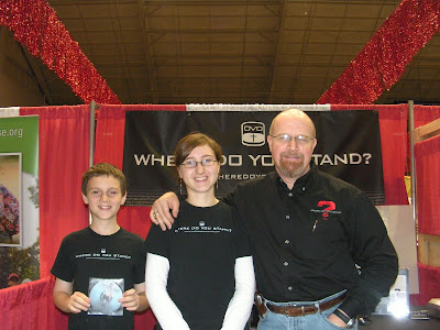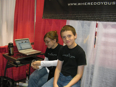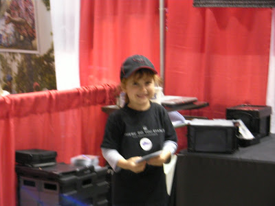 Update, 5:28 PM: As a review of yesterday – when the Beasley clan came by for a visit, Sandra left Lydia with me for a while (per Lydia’s request). Without my asking her to do anything – she immediately went towards the front of the booth and proceeded to give DVDs away as if she’d been doing it for quite a while. Very few refused her…